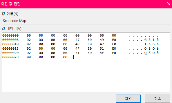Scancode Map키에 이진 값을 입력해야 합니다.